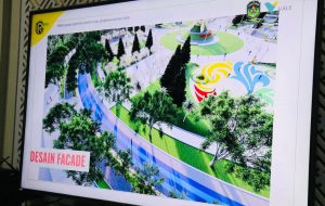 Usai Bupati Irwan sambutan, tim konsultan PT Rustika memaparkan konsep desain terbaru BBG. Desain yang ditampilkan menunjukkan wajah baru bundaran. (*)