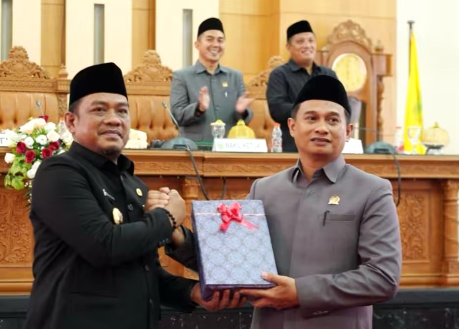 Bupati Luwu H. Patahudding menyerahkan dokumen KUA-PPAS 2026 kepada Ketua DPRD Luwu dalam rapat paripurna, sebagai langkah awal pembahasan APBD tahun depan. (FT: Ist)
