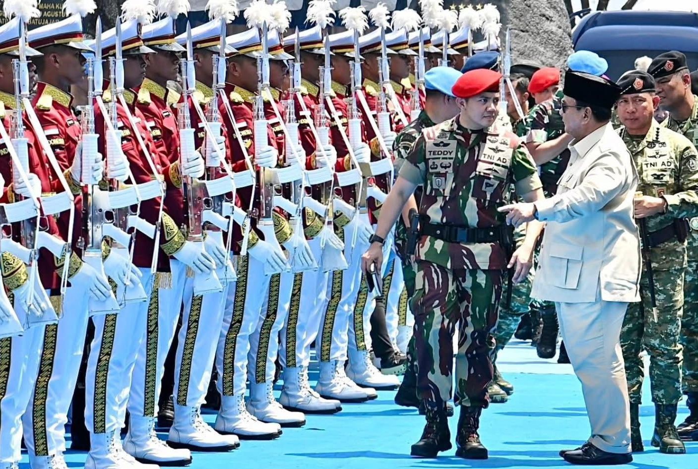 “Upacara ini menjadi momentum penting penegasan arah kebijakan pertahanan nasional,” kata Sekretaris Kabinet Teddy Indra Wijaya.