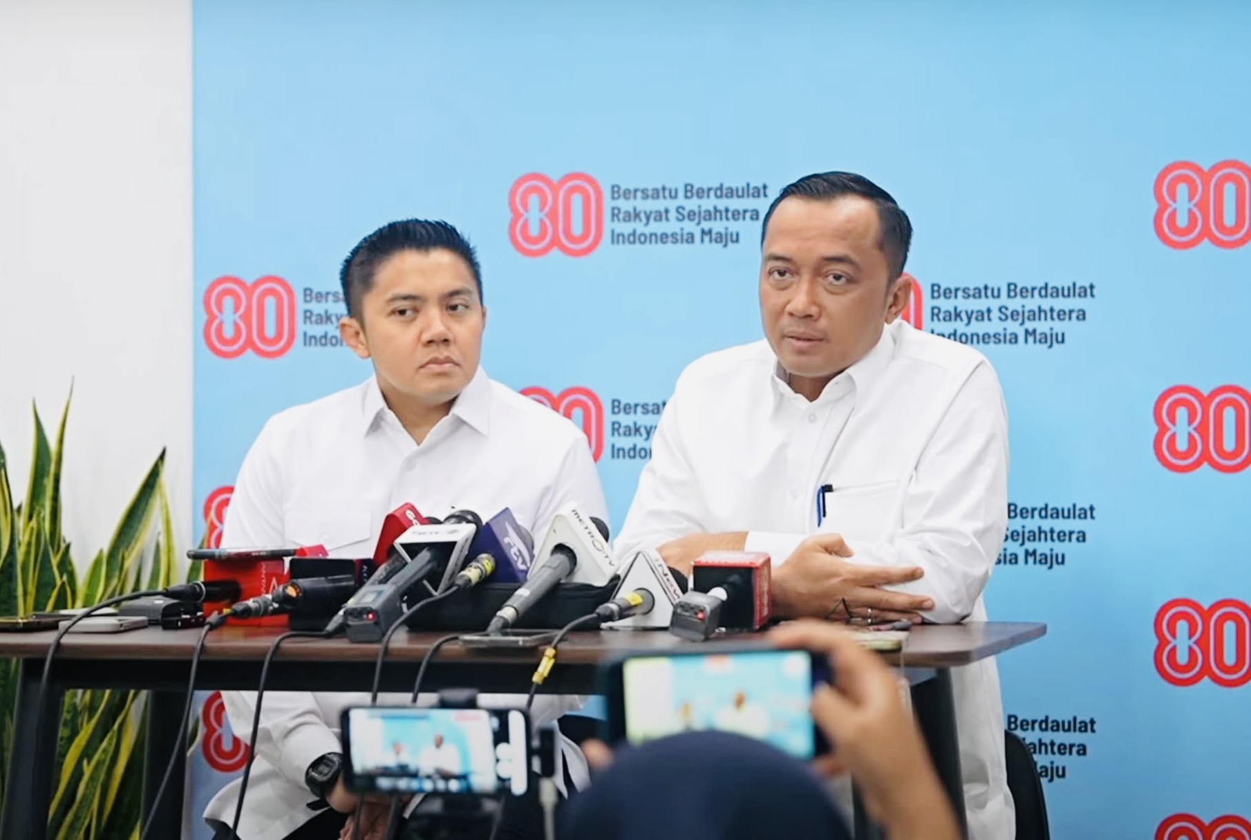 Mensesneg Prasetyo Hadi, didampingi Seskab Letkol Teddy Indra Wijaya, menyampaikan sikap Istana terkait OTT Wamenaker. Presiden Prabowo hormati proses hukum di KPK. (FT: BPMI Setpres)