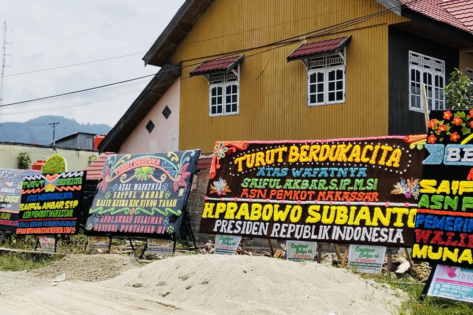 Pantauan Sentrum, hingga menjelang malam ketiga setelah pemakaman, puluhan papan bunga terus berdatangan dari berbagai instansi pemerintahan, tokoh politik, hingga organisasi masyarakat.