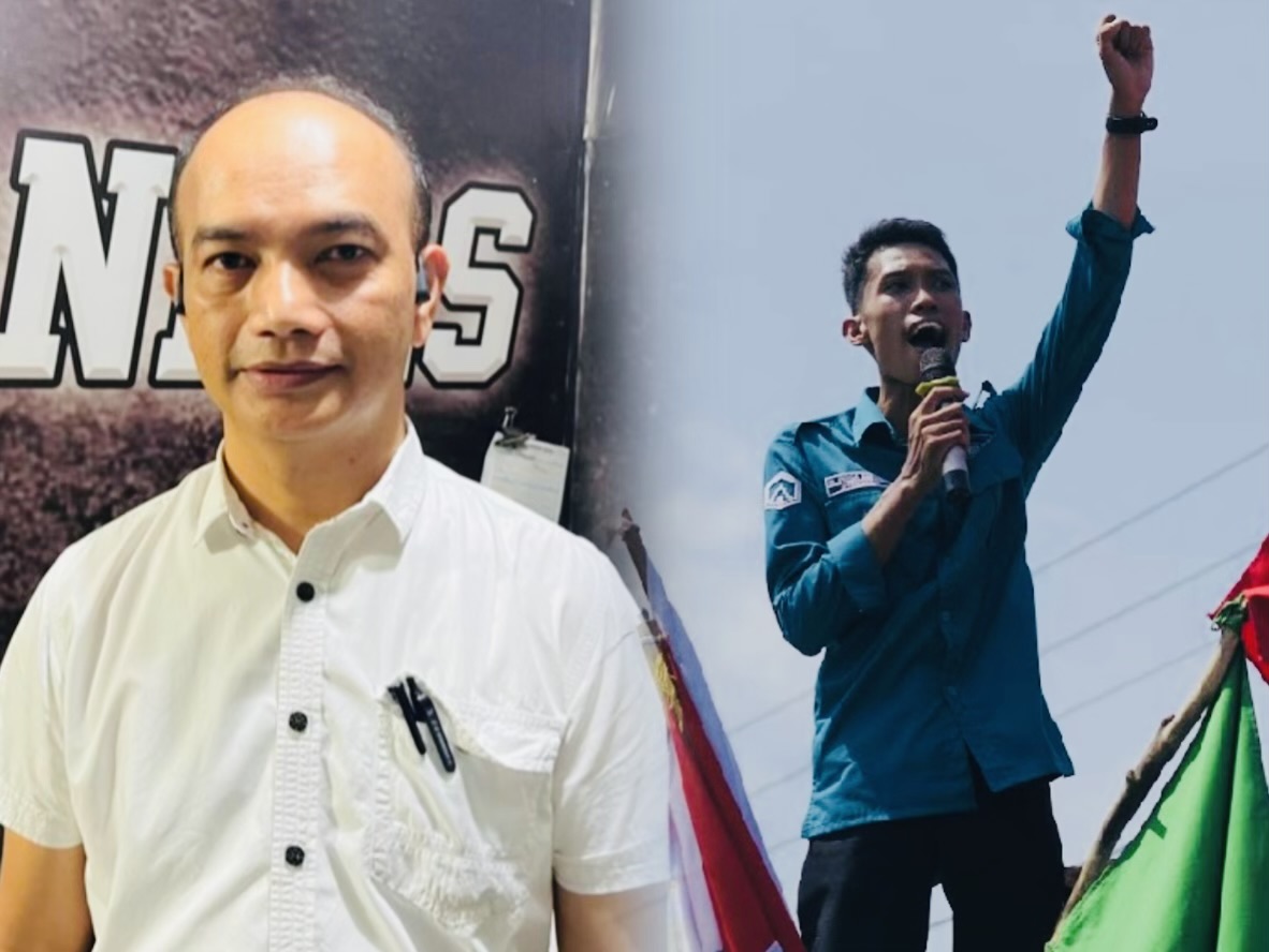 Kolase Foto: Kasat Reskrim Polres Palopo Iptu Syahrir dan Koordinator Aksi Aliansi Badar, Dirga Saputra. (FT: Ist)