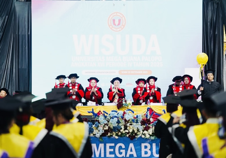 SENTRUMnews.com, PALOPO – Universitas Mega Buana (UMB) Palopo sukses menutup rangkaian prosesi wisuda Angkatan XVI yang digelar dalam empat periode. Puncak kegiatan berlangsung pada Senin (29/9/2025) di Saodenrae Convention Center, diikuti oleh 564 wisudawan dari program S2 Kesehatan Masyarakat, S1 Kesehatan Masyarakat, dan S1 Kebidanan.
