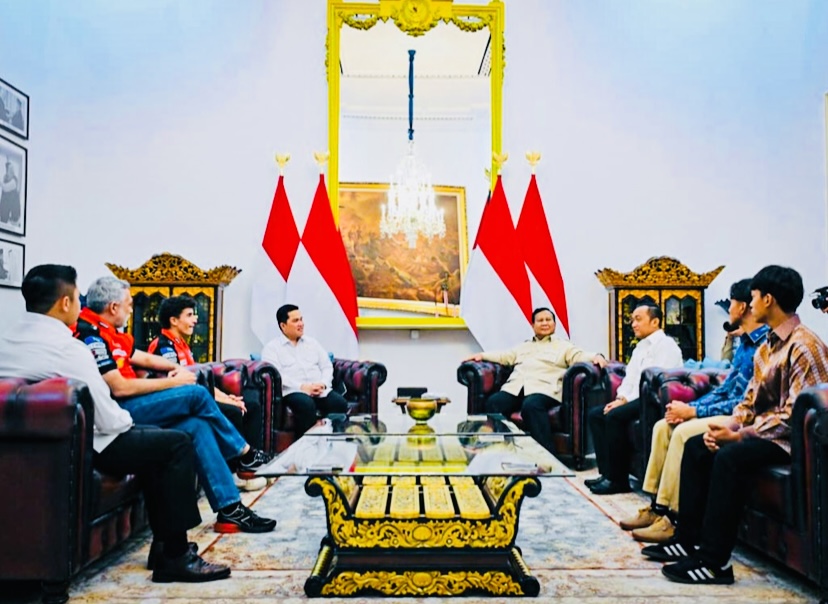 SENTRUMnews.com, JAKARTA – Presiden Prabowo Subianto menerima kunjungan juara dunia MotoGP 2025, Marc Marquez, di Istana Merdeka, Jakarta, Selasa, (30/9/2025). Marquez datang bersama dua pembalap muda Indonesia, Mario Aji dan Veda Ega Pratama, dalam agenda yang juga dihadiri Menteri Pemuda dan Olahraga Erick Thohir.