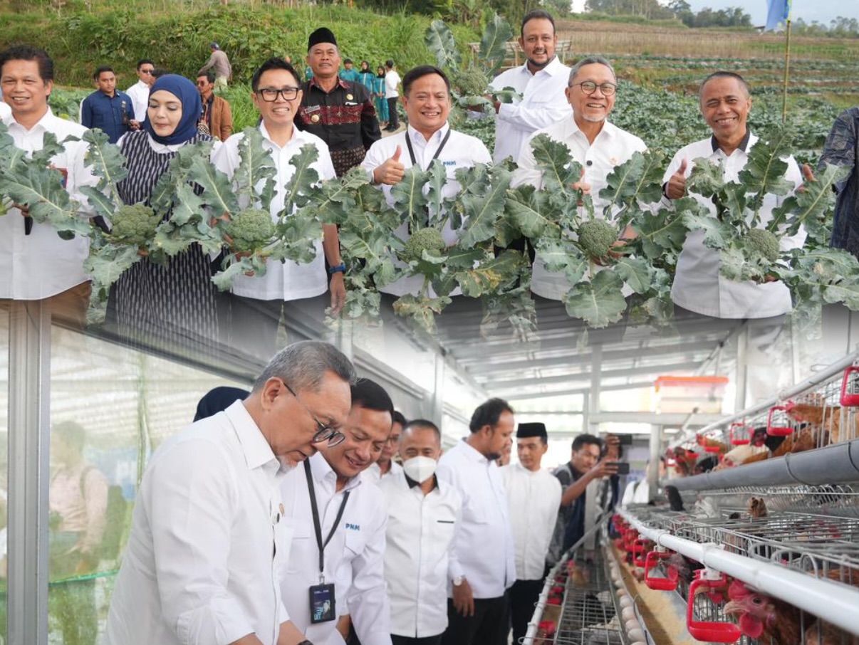 Kolase Foto: Menko Pangan Zulkifli Hasan panen brokoli dan cek kandang ayam petelur di Rumah Pangan PNM, Kopeng. (FT: Dok. PNM)