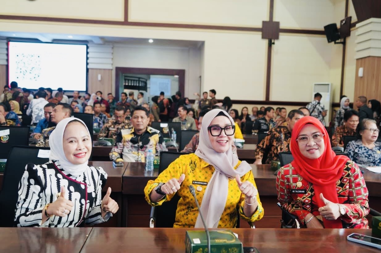 Wali Kota Palopo Hj. Naili (kiri) berpose di sela-sela Rakor Pemberantasan Korupsi se-Sulsel yang digelar KPK di Makassar, Kamis (16/10/2025). (FT: Dok. Hms)