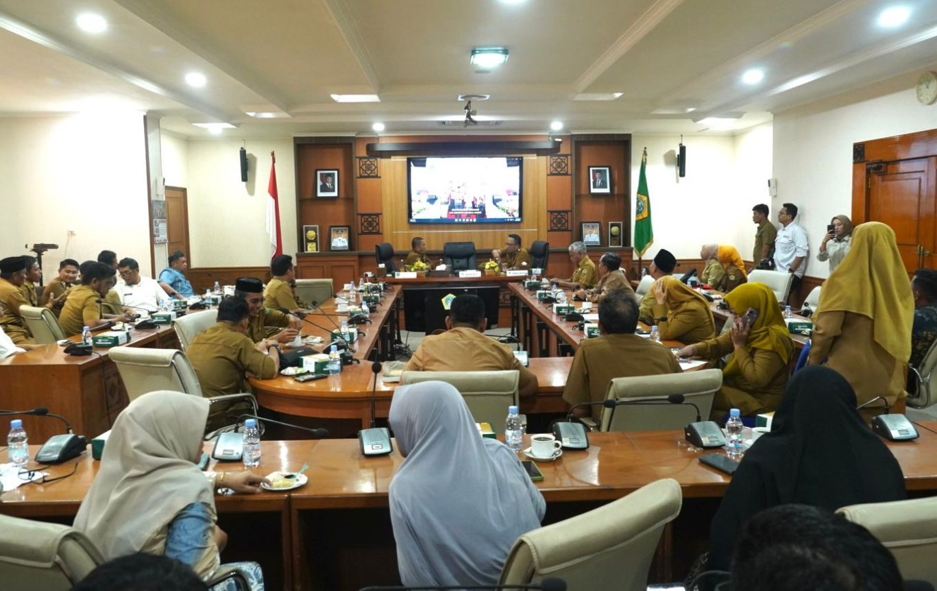 Bupati Lutim Irwan Bachri Syam bersama rombongan kades disambut hangat Bupati Gresik Fandi Akhmad Yani saat kunjungan belajar industri bandeng, Senin (20/10/2025). (Foto: Dok. Hms)