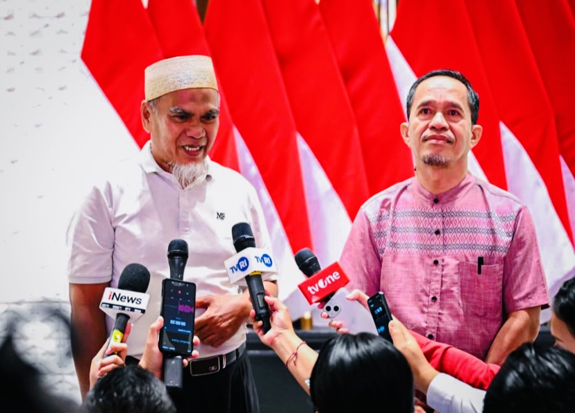 Drs. Abdul Muis (kiri) dan Drs. Rasnal, M.Pd (kanan) usai menerima surat rehabilitasi dari Presiden Prabowo Subianto, Kamis (13/11/2025) (FT: Dok. Serpres)