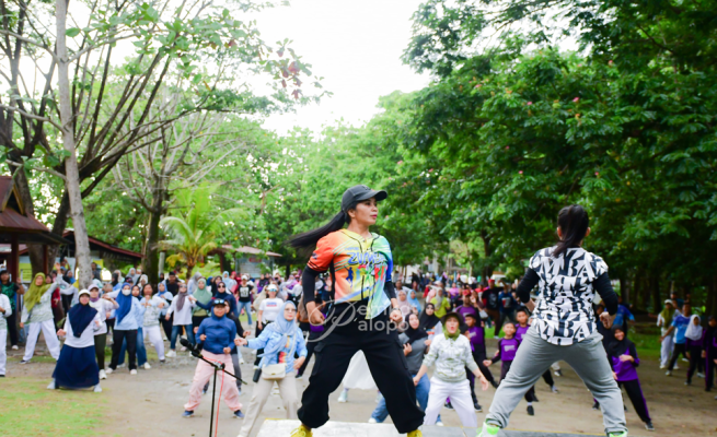 Warga Palopo Padati Pantai Labombo, Ikut Senam, Kerja Bakti, dan Bazar Sampah