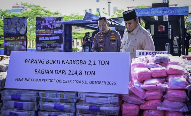 Prabowo Pimpin Pemusnahan 214 Ton Narkoba Senilai Rp29 Triliun, Tegaskan Perang Total Lawan Narkotika